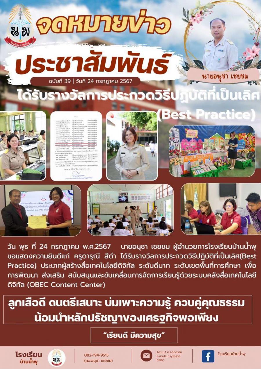 ได้รับรางวัลการประกวดวิธีปฎิบัติที่เป็นเลิศ (Best Practice)