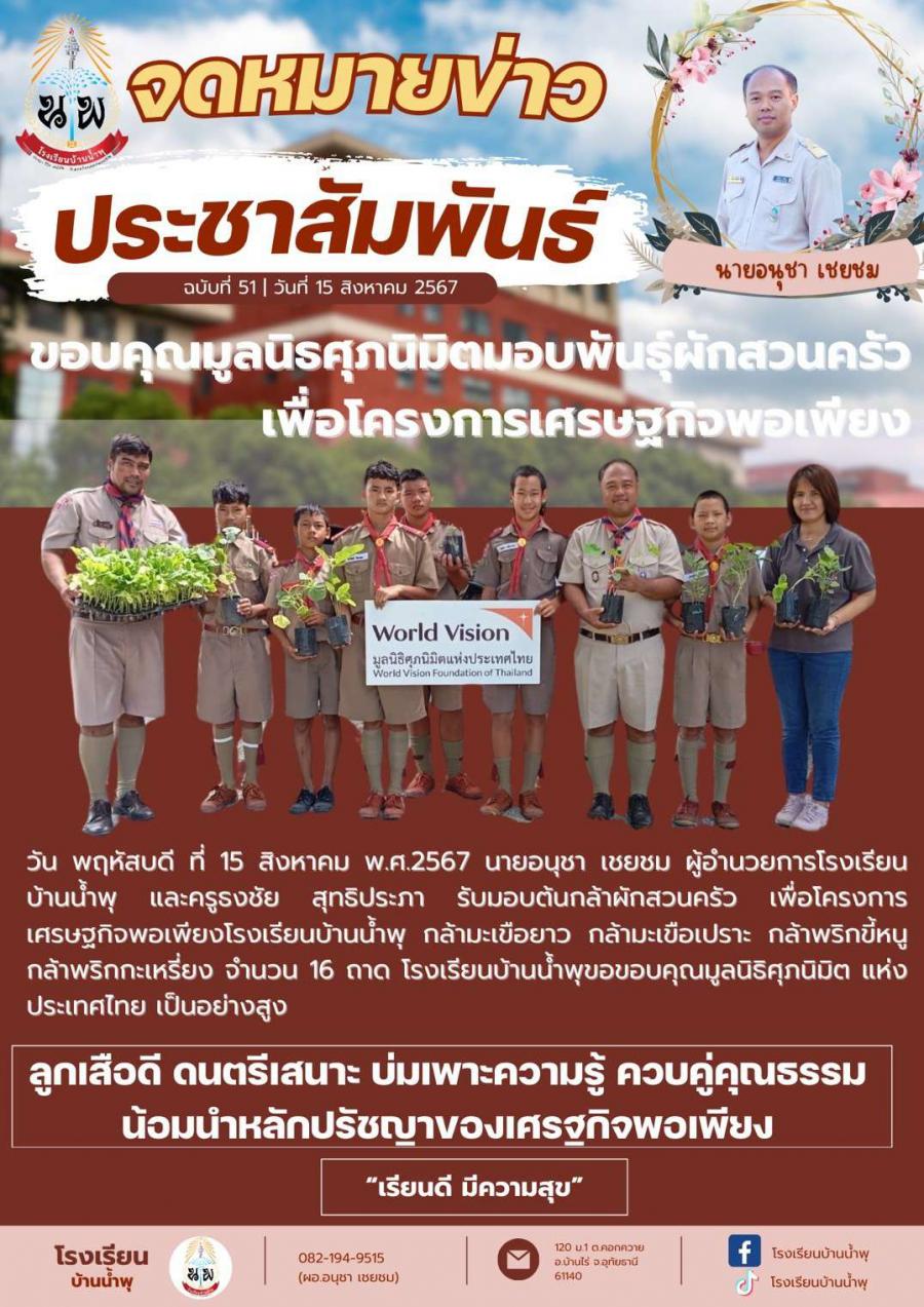 ขอบคุณมูลนิธิศุภนิมิตมอบพันธ์ุผักสวนครัวเพื่อโครงการเศรษฐกิจพอเพียง