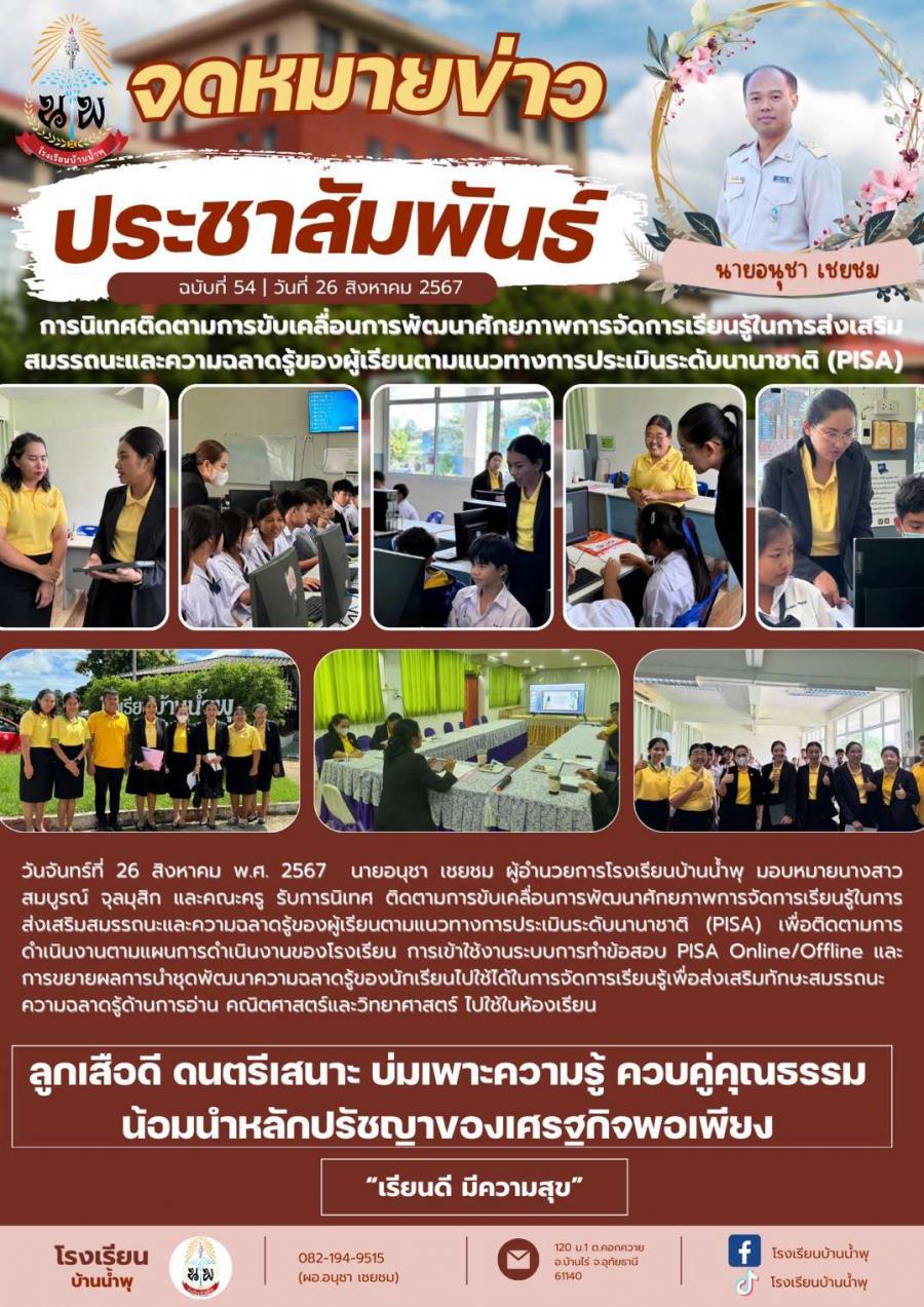 การนิเทศติดตามการขับเคลื่อนการพัฒนาศักยภาพการจัดการเรียนรู้ในการส่งเสริมสมรรถและความฉลาดรู้ของผุ็เรียนตามแนวทางการประเมินระดับนานาชาติ